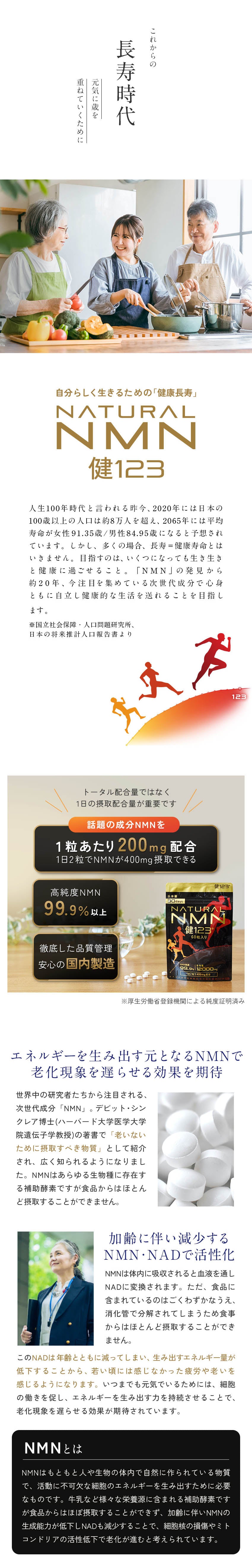健123のNATURAL NMNは1粒あたり200mgのNMNを使用し、ひと月で12,000mgのNMNを摂取することができます。